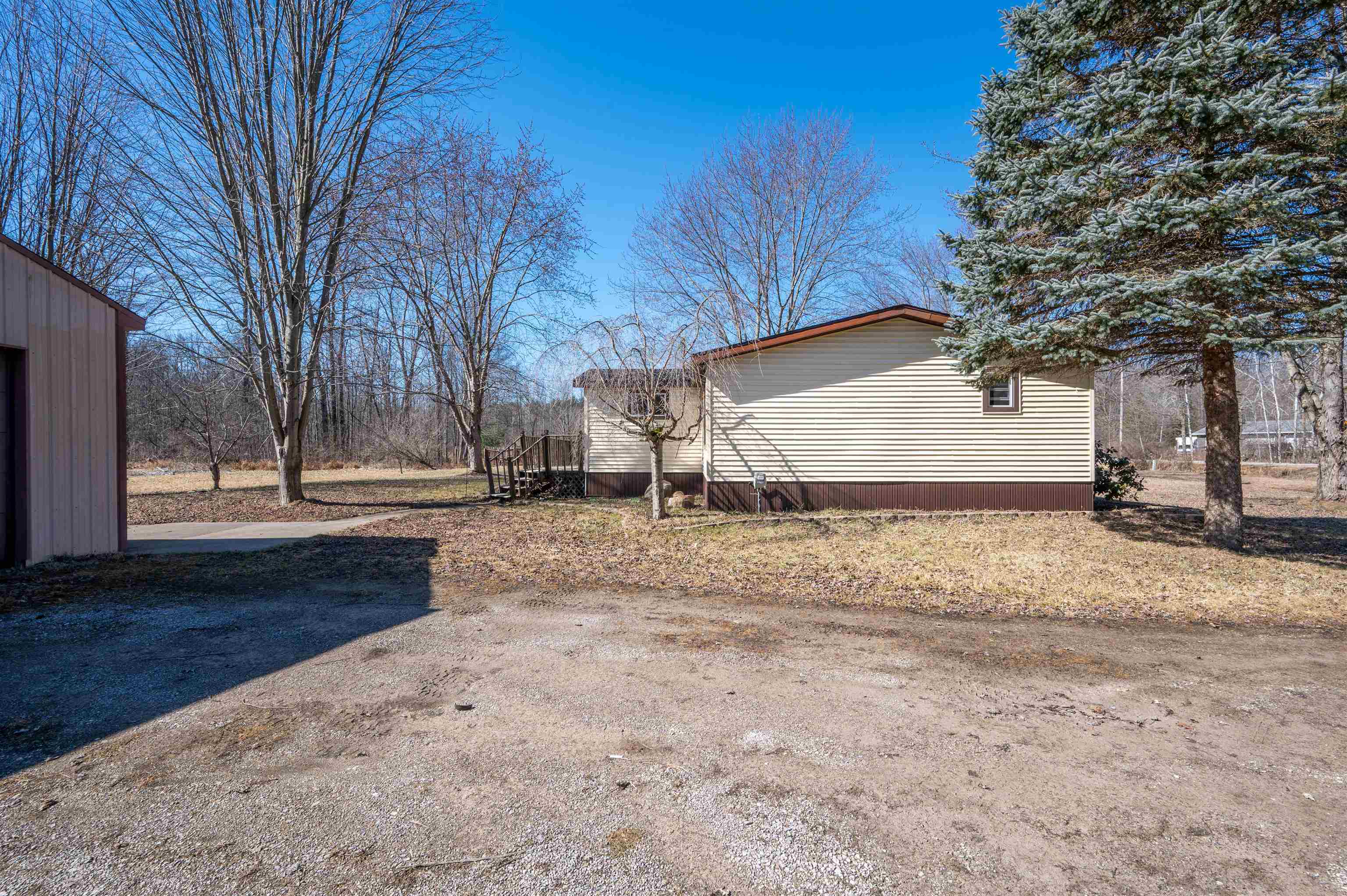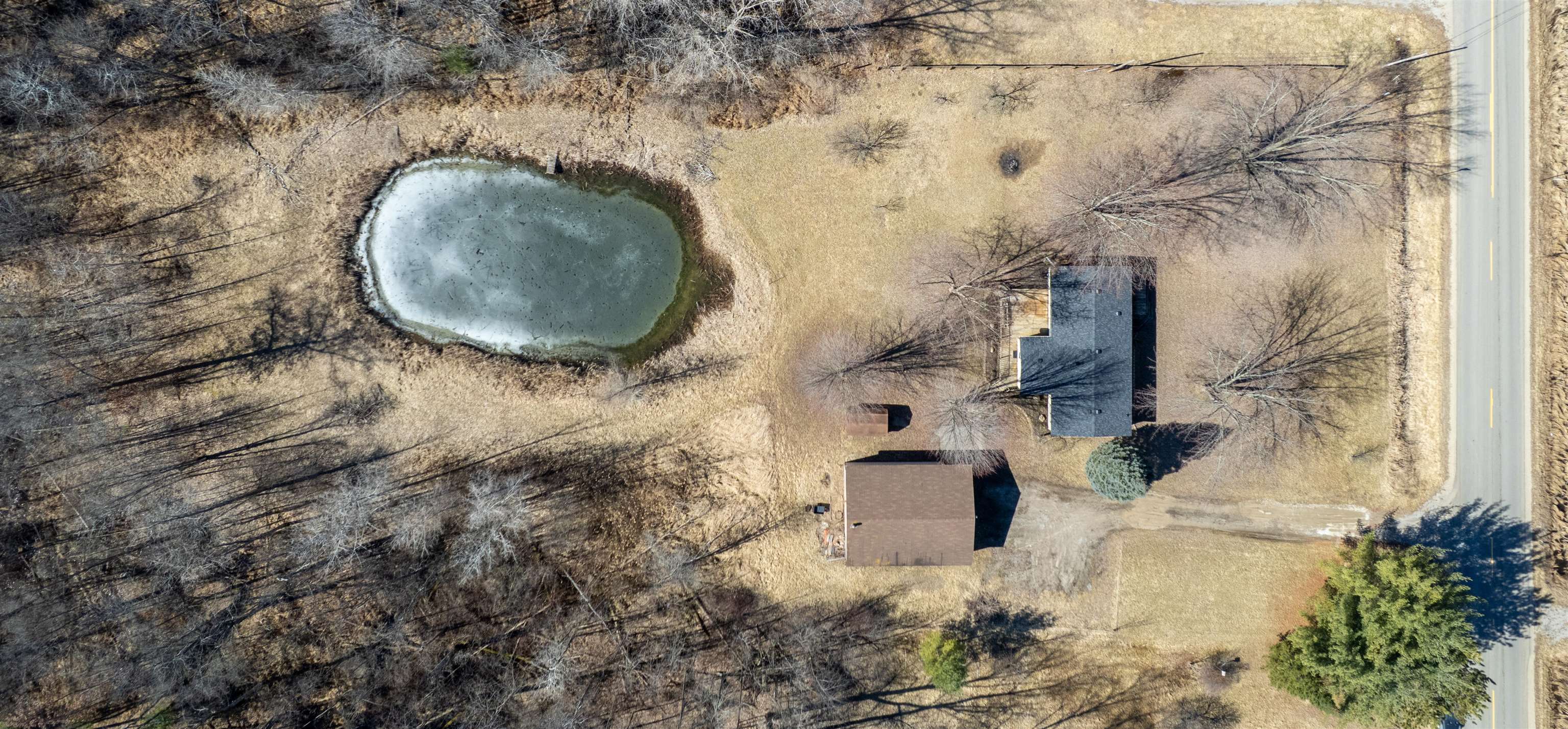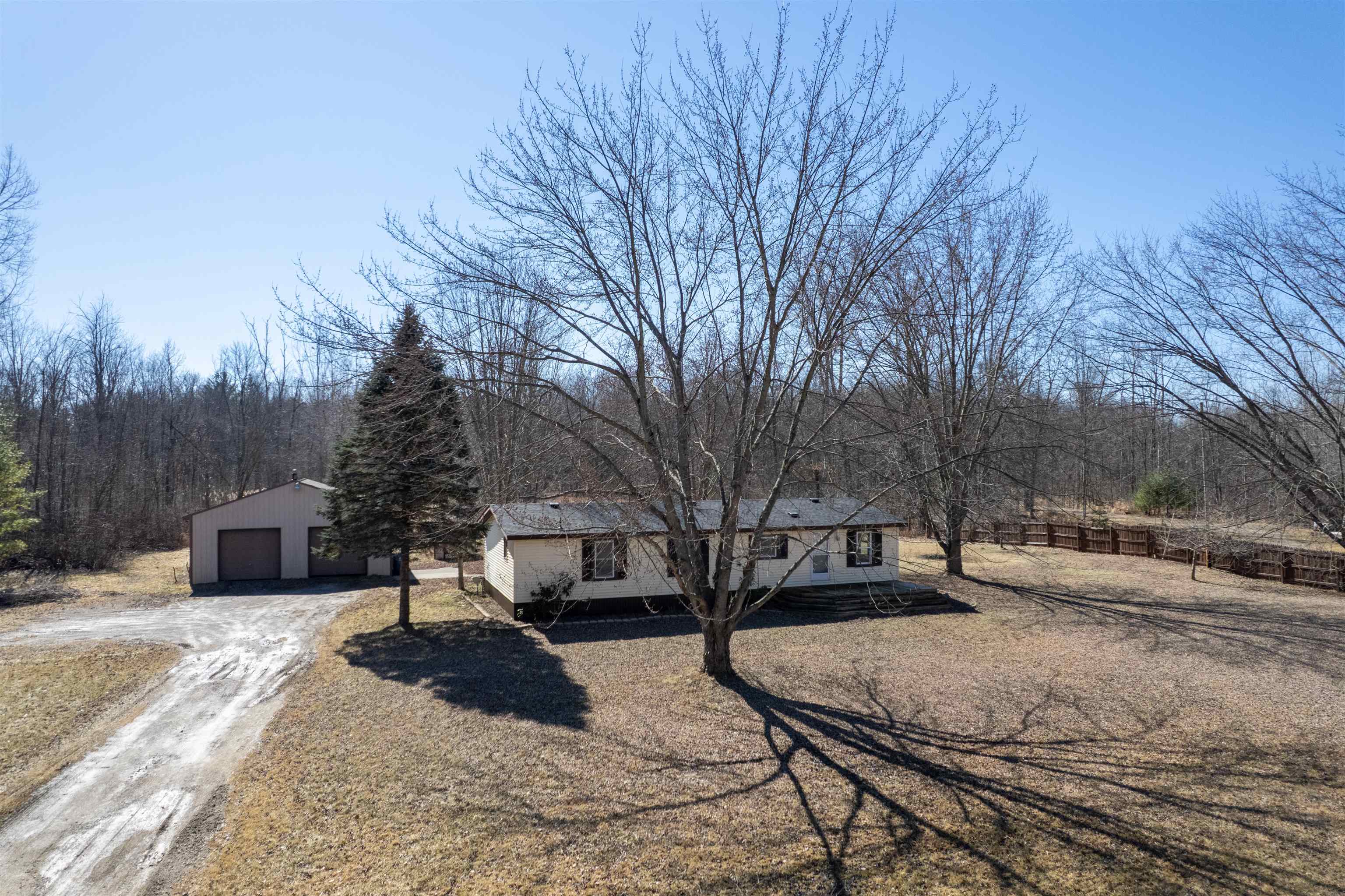 Nestled on over 4 wooded rural acres, this beautifully updated 3-bedroom, 2-bath ranch home offers the perfect blend of privacy, nature, and modern comfort. The property features a stunning 25-foot-deep pond, creating a peaceful setting for relaxing, fishing, or simply enjoying the scenic views. Inside, the home has been thoughtfully updated with new flooring (2026), fresh paint, and insulated, drywalled walls throughout for improved comfort and efficiency. Quality details shine with maple trim and interior doors and Thermopane Low-E windows that provide energy efficiency and abundant natural light. Major mechanical updates include a new roof (2025), new furnace (2025), and new central air (2026) for peace of mind. The custom kitchen by Nowak Cabinets offers exceptional functionality with premium features including slide-out shelving and adjustable storage, making organization effortless while providing a beautiful space for cooking and gathering. Outdoors, the property truly stands out. A 30 x 40 insulated and heated pole barn with 10-foot ceilings offers incredible space for hobbies, storage, or a home workshop. The barn includes a dedicated workshop area, two 9' x 8' overhead doors, and a 10' x 10' rear sliding door for easy access to equipment or recreational vehicles. Additional highlights include a storage shed and fruit trees scattered throughout the property. With city water, natural gas, and high-speed internet available, this property offers the tranquility of country living without sacrificing modern conveniences. A rare opportunity to enjoy space, privacy, and extensive upgrades?all in a beautiful natural setting.