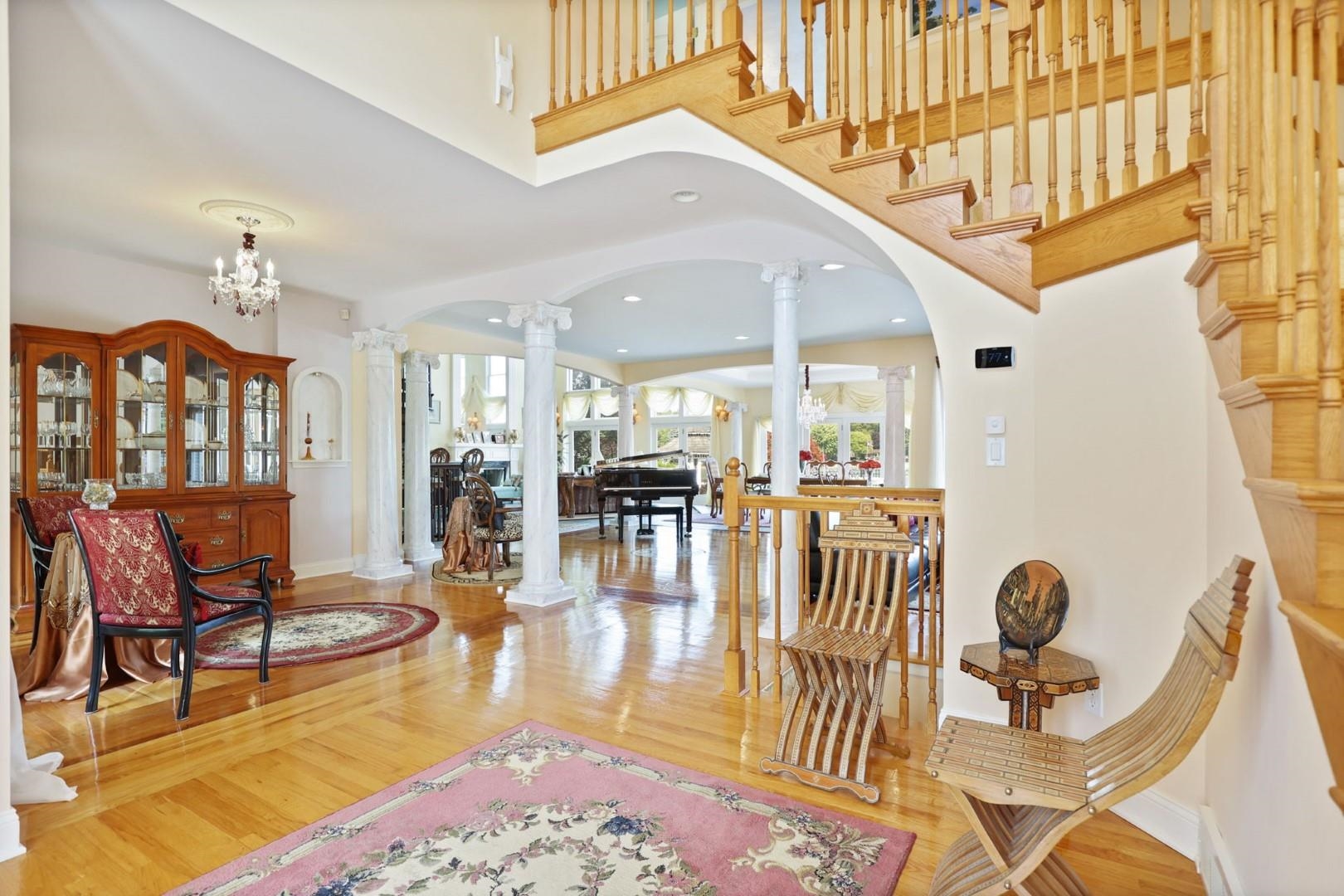 Discover unparalleled elegance in this grand lake front residence offering over 6,800 total square feet of living space with four en suite bedrooms and seven baths. The home was COMPLETELY REDESIGNED AND REBUILT 2007, with a 4000 sq ft. NEW STRUCTURE, electricity, plumbing and heating. There is a bedroom located on the first floor for ease and convenience, perfect for guests or family, the primary bedroom is located on the second floor and includes a sitting area, fireplace and wet bar; and is also adjacent to the library/den. Bedroom three and four, also located on the second floor, have gorgeous views of the lake and an additional second home office. Soaring 18' ceilings and floor to ceiling windows are just a few of the high end features. Others include, Schonbek crystal chandeliers, custom cabinetry, marble and fine wood flooring, custom bathroom fixtures, smart home technology, whole house generator, an Olympic size inground pool with automatic cover, outdoor kitchen, an 11x11 pergola and 5,616 sq ft of stamped concrete patio. The lower level offers an exercise room, theatre area, dance floor and game room. This is truly a home that will surpass any of your expectations and can provide you the lifestyle you have always wanted. Meticulously maintained and updated.