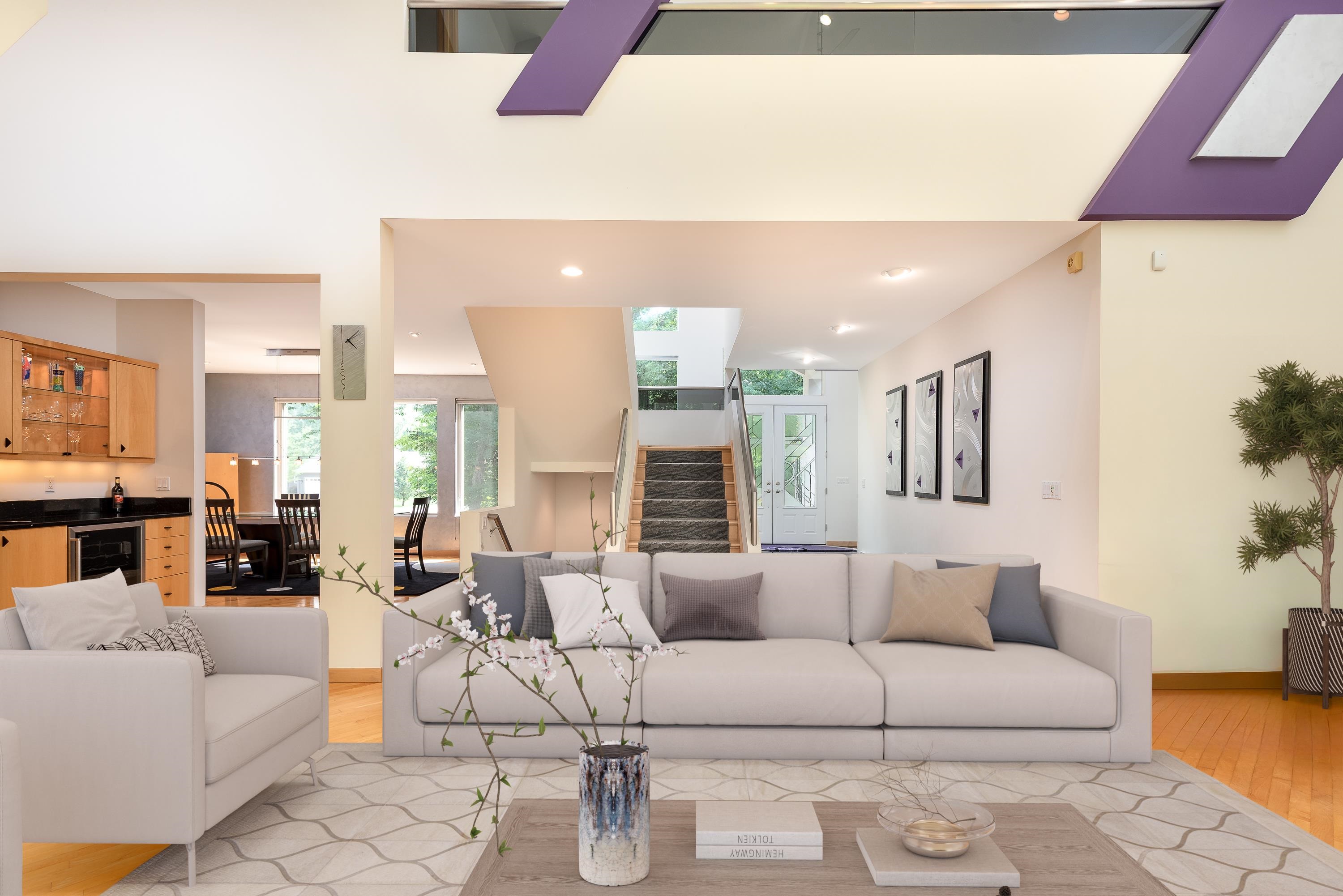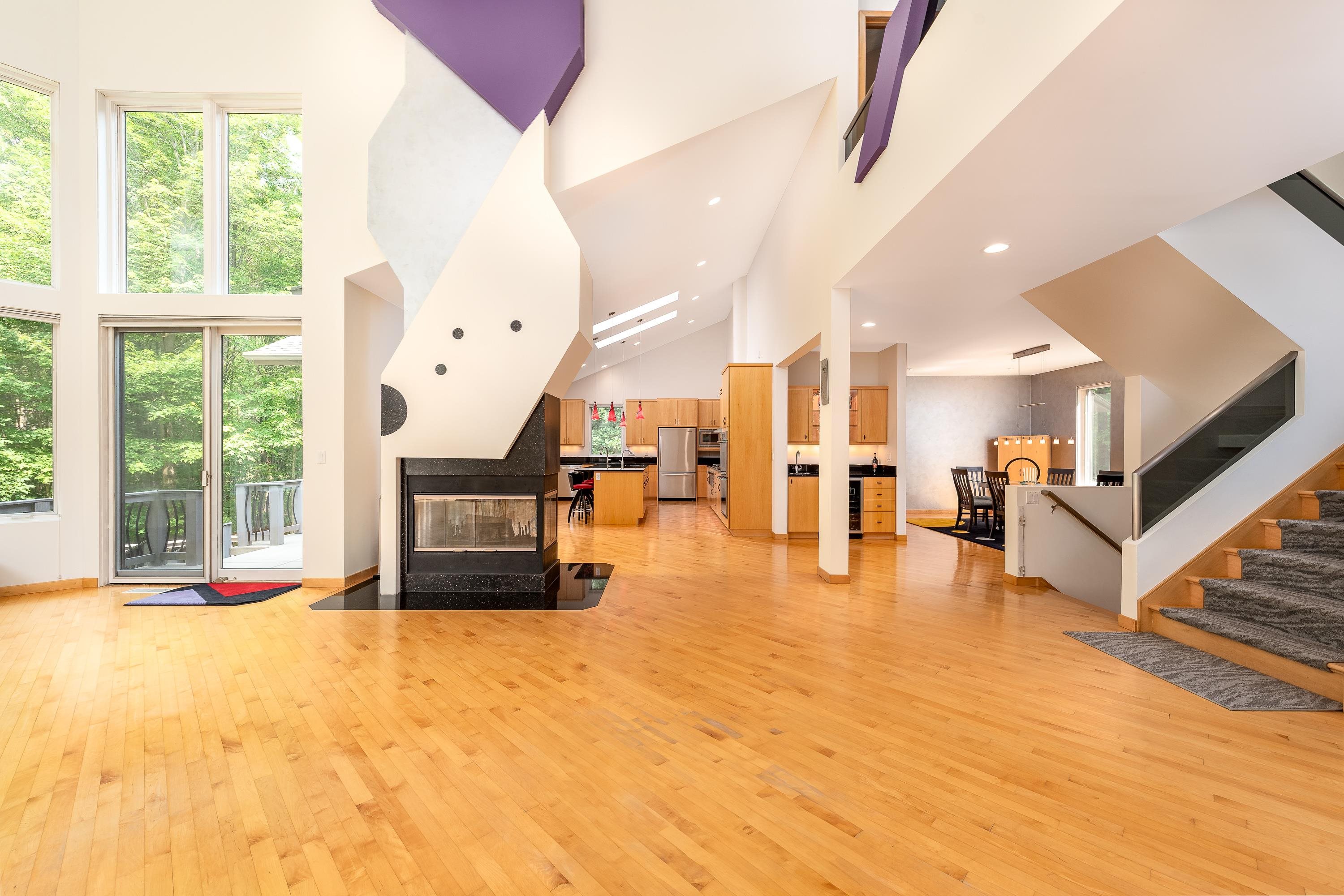 A true architectural statement, this Bill Phillips?designed estate stands among the most exceptional homes currently on the market. Set on 5.54 private, wooded acres, the residence offers four bedrooms and 4.5 baths, blending refined elegance with thoughtful, high-end functionality throughout. The custom main-floor primary suite is a private retreat, exuding understated luxury. Highlights include a personal fireplace, private deck, and a spa-inspired bath complete with its own fireplace, soaking tub, expansive shower, and exceptional closet space? with bespoke shoe storage. Every detail has been curated to support a sophisticated, yet livable lifestyle. Designed with both entertaining and everyday comfort in mind, the main living areas overlook the serene acreage beyond. Extra-thick Canadian maple flooring flows throughout the home, providing a warm, timeless foundation that beautifully supports transitional décor. A striking three-way gas or wood-burning fireplace anchors the space, while floor-to-ceiling windows flood the interior with natural light. The gourmet kitchen is nothing short of stunning, featuring Dacor professional-grade appliances, expansive granite countertops and backsplash, a designer hood vent, generous pantry space, and a custom cookbook cabinet. Dining options are equally impressive, offering seamless transitions from the statement island to a quiet eat-in area, and on to the formal dining room. A butler?s pantry with upscale wine refrigeration, abundant storage, and refined lighting provides a second serving area ideal for entertaining. The finished lower level extends the home?s versatility, offering a fourth bedroom with private access to a full bath, a dedicated fitness room, workshop, walk-out access to the back patio, and tremendous storage. From construction quality to the strategic sourcing of materials, this home reflects a level of professional design and craftsmanship that is both evident and enduring. The oversized three-car garage