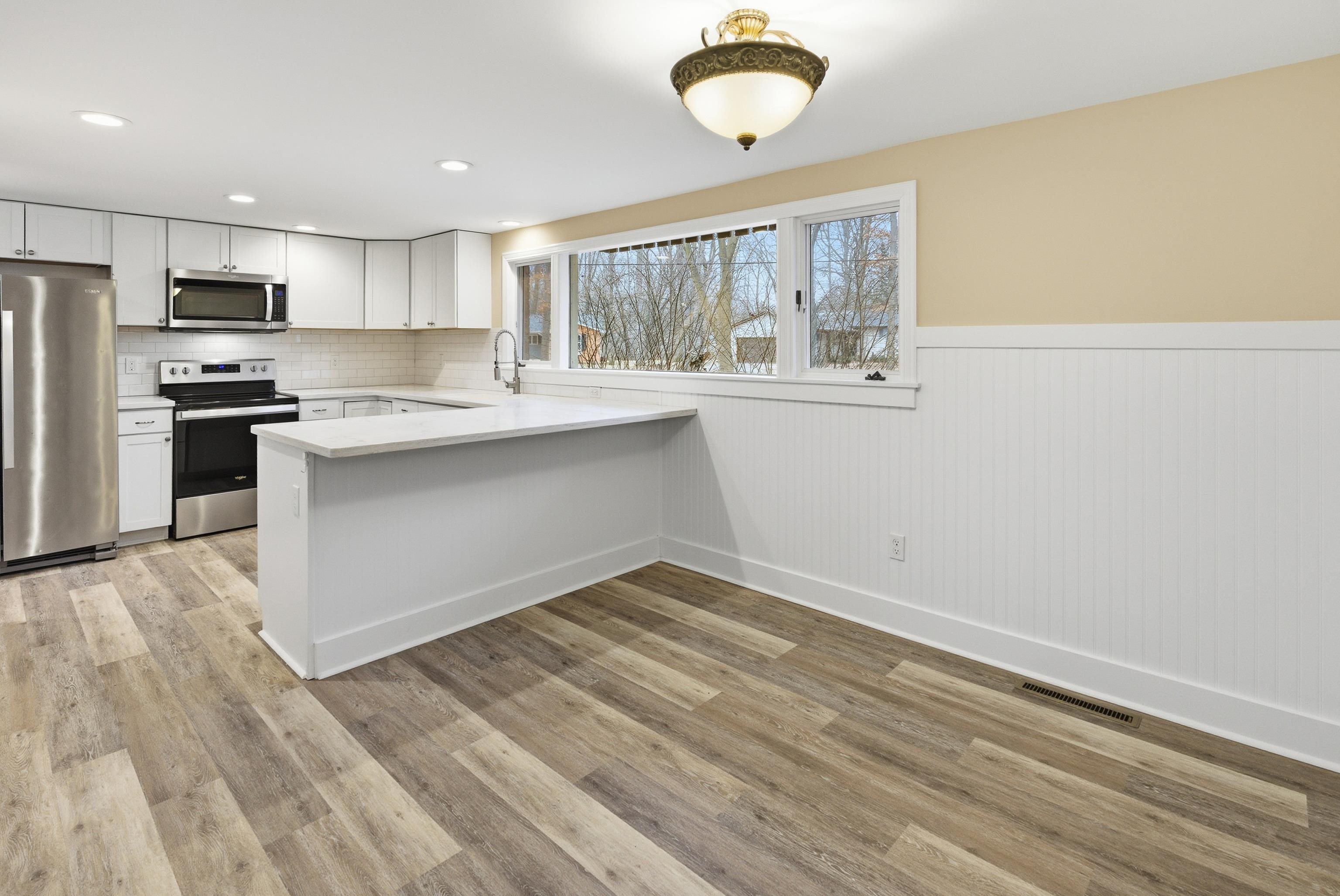 STUNNING ON STURGEON CREEK! Welcome to this four bedroom, two bathroom home with an impressive 1,936 square feet of living space! A beautiful brick fireplace, vaulted ceilings and stunning new flooring make this living room feel spacious and cozy at the same time! The all elegant all white kitchen offers stainless steel appliances, lovely new countertops plus an eat-in kitchen area! The main floor owners suite features a large walk in closet and an en suite. Two more bedrooms are found on the main floor each with fresh paint, new flooring and plenty of closet space. Upstairs is a room that could be used as an additional fourth bedroom with a closet, craft area, toy room or something else that fits your needs! This upper room also offers an adorable balcony to walk out and enjoy the fresh air from. The full unfinished basement gives you even more storage or the room to add another finished living area for you home! The backyard highlights a storage shed, fenced patio area, and partially fenced yard. Being just minutes from Dow High, the Midland Mall, and Dow Gardens - this is an ideal location in Midland! Flood insurance is required on this home. Call today for your private tour!