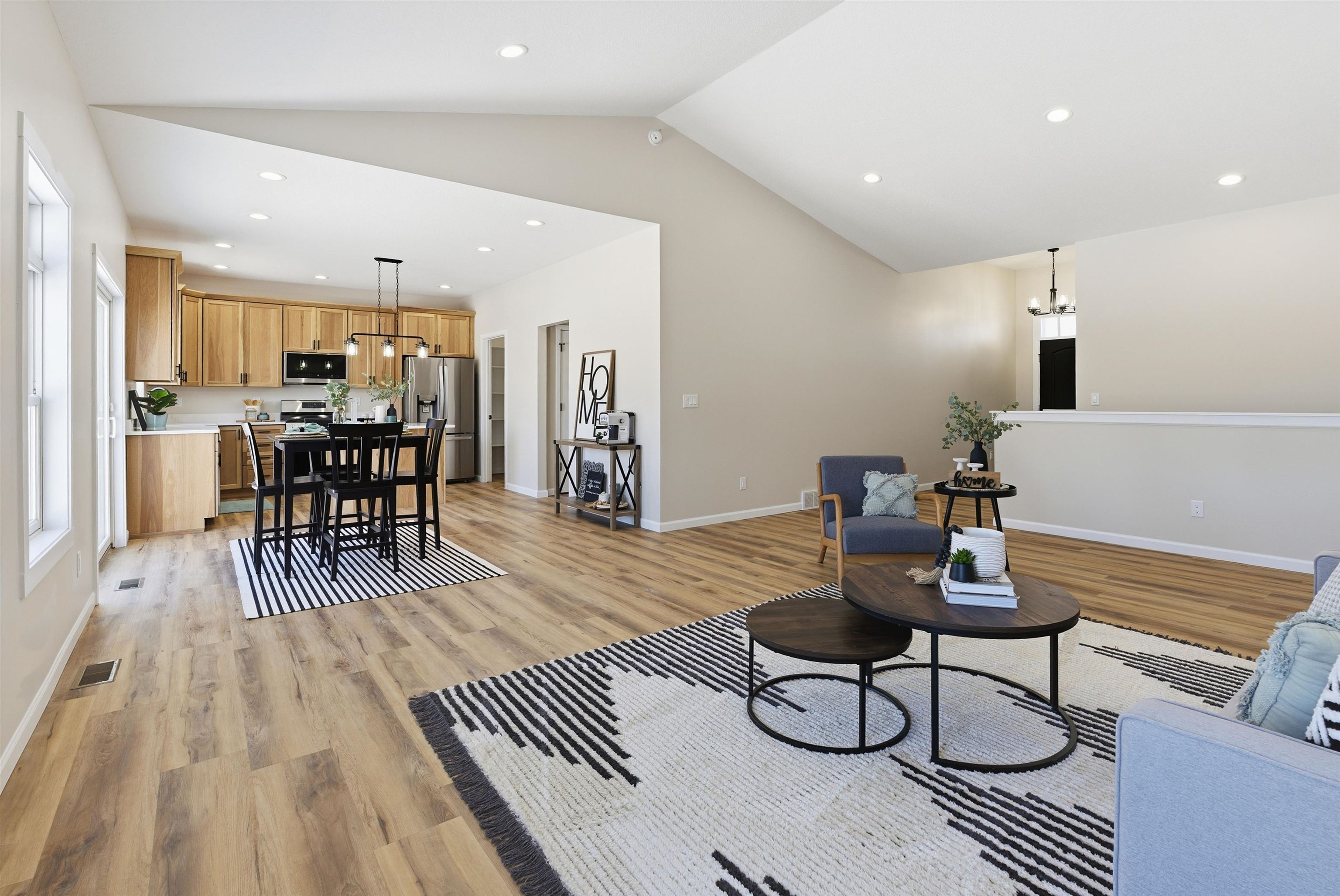 Captivating on Crossroads!! Step into this stunning brand-new home offering 1,951 square feet of thoughtfully designed living space. The open-concept layout blends style and durability with natural hardwood cabinetry, luxury vinyl plank flooring, and quartz countertops throughout. The kitchen is both beautiful and functional, featuring stainless steel appliances, a spacious walk-in pantry, and custom black light fixtures that add a sleek, modern edge. The primary suite is a true retreat with tray ceilings, a generous walk-in closet, and a private bath designed for comfort and relaxation. Enjoy outdoor living on the expansive 20x20 patio, perfect for entertaining or unwinding. The extra-deep 3-car garage offers abundant space for vehicles, storage, or hobbies. Built with quality in mind, this home boasts 2x6 construction and a full basement with 9-foot ceilings, providing endless potential for future expansion. With modern finishes, smart design, and exceptional craftsmanship throughout, this move-in-ready home checks every box.