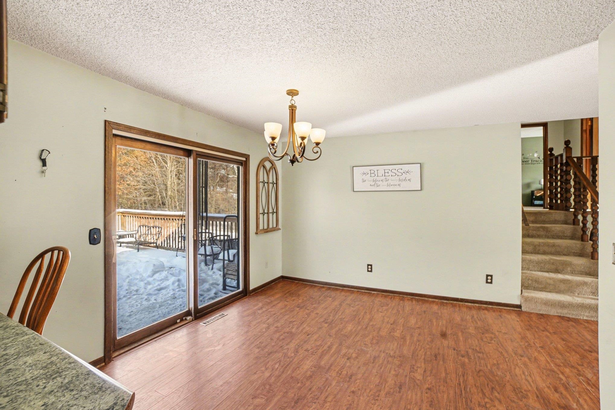 CHEERFUL MEMORIES AHEAD ON CHIPPEWA RIVER! The best of both worlds! This 4 bedroom 2 ½ bathroom quad level home is conveniently located a few minutes from the hub of downtown Midland, yet it has the solitude of separation from your neighbors on 2.2 acres. This property offers a 24 x 32 pole barn with a lean-to on the side and 220 power for all of those projects that you like to work on. When you walk into the 1800 square foot home you will find a large living room with a bay window, kitchen with eat-in dining area, as well as a half bathroom conveniently located on the main floor. Beyond the dining area is a slider that leads out to the large deck and fenced-in backyard. The backyard is a private oasis where you will have seclusion from your neighbors. When you walk upstairs you will find three sizable bedrooms and one of the full bathrooms. This bathroom can be accessed from both the hallway and primary bedroom. When you walk down to the lower level you will find a cozy family room, the 4th bedroom, and the second freshly painted full bathroom. The family room boasts a fireplace with a newer wood burning insert and a blower that will heat your entire home! You can then head down the basement where the laundry room, furnace, sump pump with battery backup, and storage shelving are located. There is an outdoor wood boiler connection available if you would like to use it for hot water and heat instead of natural gas. A greenhouse is also on the property if you have a green thumb and would like to extend the growing season. A new roof (2025) and garage door have been installed recently, and the dishwasher was replaced in 2022. This is the perfect home if you want to be close to town yet have some property with a pole barn! Give us a call for a private showing!