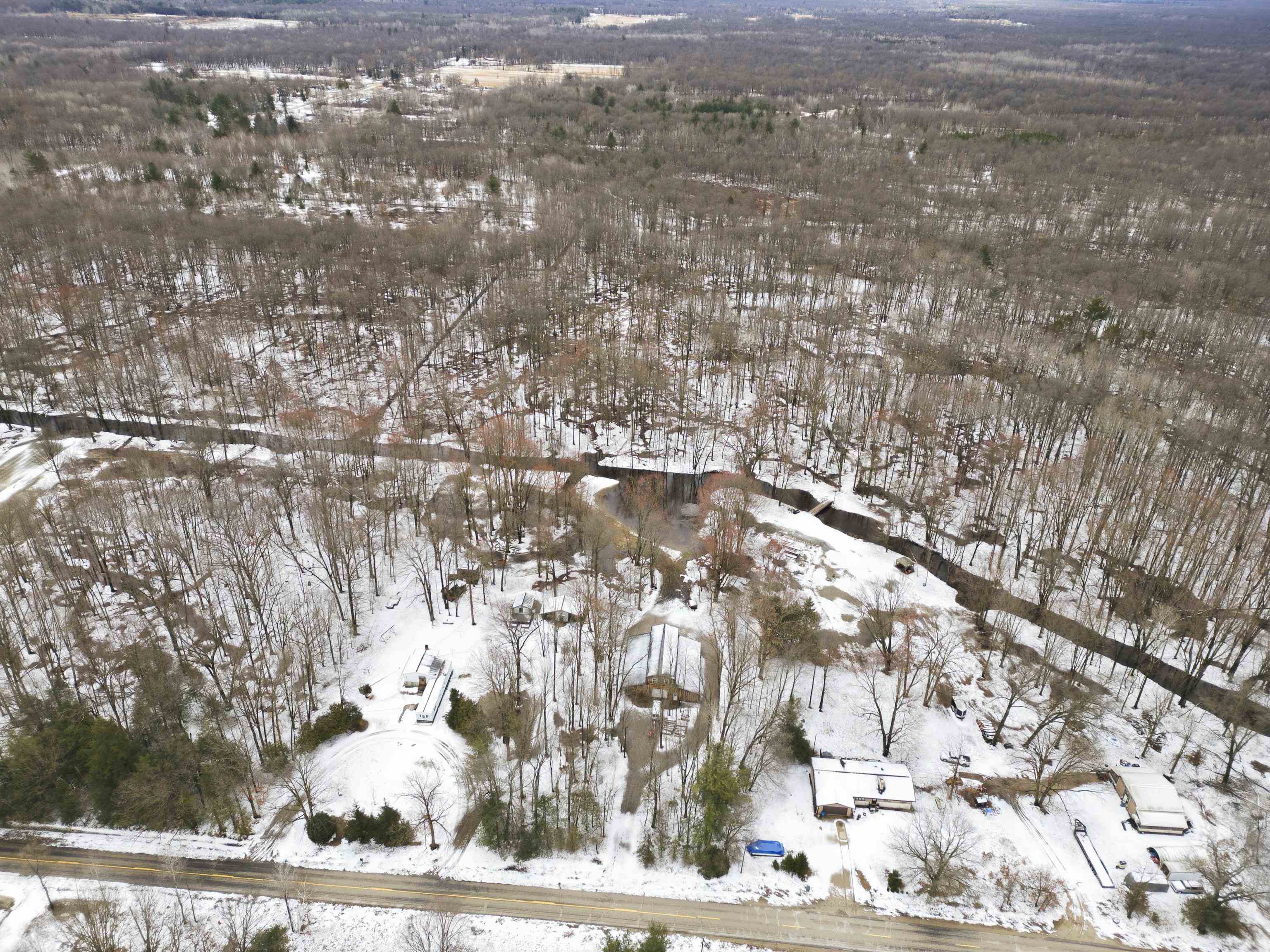 Welcome to your private country retreat at 2647 W Huckleberry Rd in Sanford, MI, a rare opportunity to own 10 beautifully wooded acres complete with multiple outbuildings and endless potential. The standout feature is the impressive 60' x 40' custom pole barn, ideal for a future barndominium conversion, offering concrete floors, electricity, a durable metal roof, two 10' x 12' drive-through garage doors, dual 60' exterior lean-tos, and a spacious 20' x 60' loft. Additional structures provide incredible versatility, including a 17' x 13' guest house with radiant heat, kitchen, and lofted living/sleeping area; a newer custom 18' x 11' shed with 9-foot walls and 18-foot lean-tos on both sides; a 16' x 20' two-level horse barn; and a 20' x 12' shed with loft. The current residence features a 60' x 12' single-wide trailer with a 20' x 20' addition, lower-level basement, and upper-level bedroom with full bath and walk-in closet?ready for your vision and updates. A private road crossing Carol Creek provides convenient access to the scenic back seven acres, perfect for recreation, animals, or future expansion. Whether you're dreaming of a homestead, hobby farm, workshop haven, or barndominium lifestyle, this one-of-a-kind property delivers space, privacy, and unlimited potential.